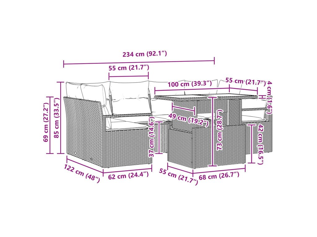 Set pohovek s polštářem 7 pcs Černá polyratan