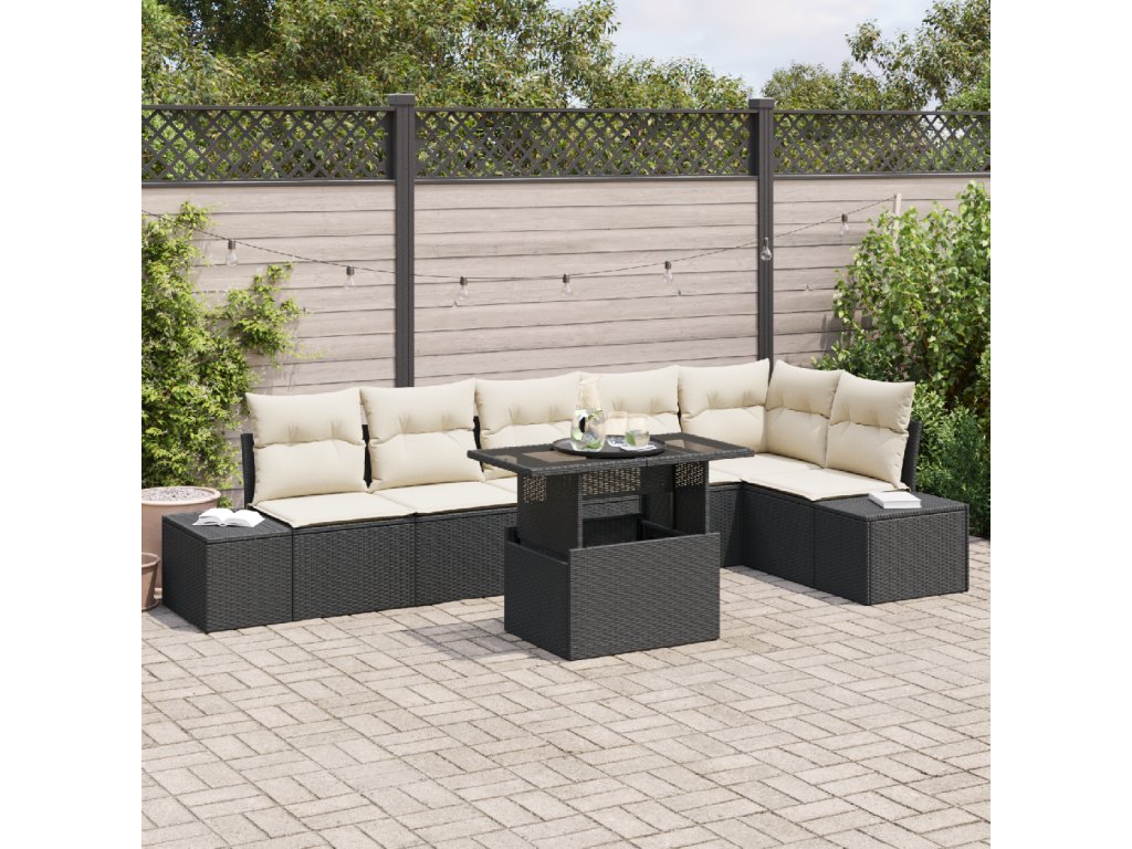 Sada zahradních pohovek s polštářem 7 pcs Černá a krémová