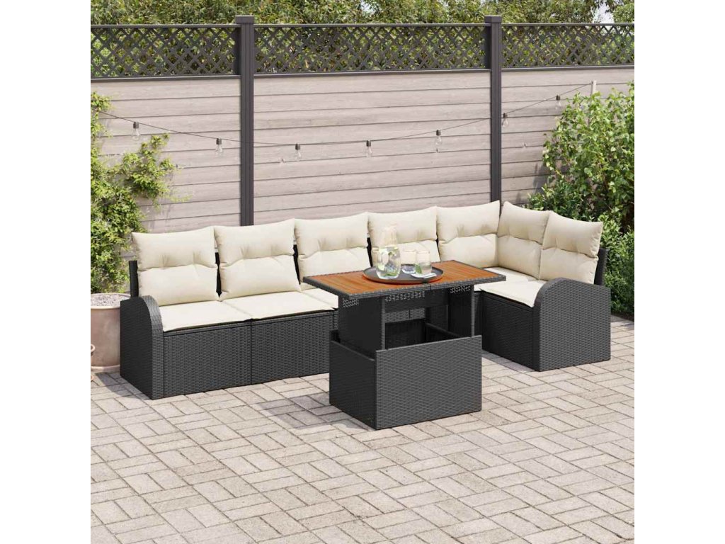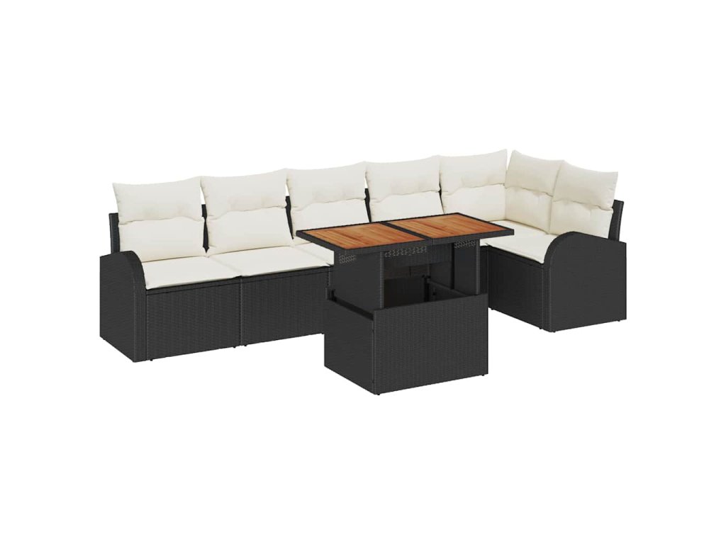 Sada zahradních pohovek s úložištěm 7 pcs Černá Poly ratan