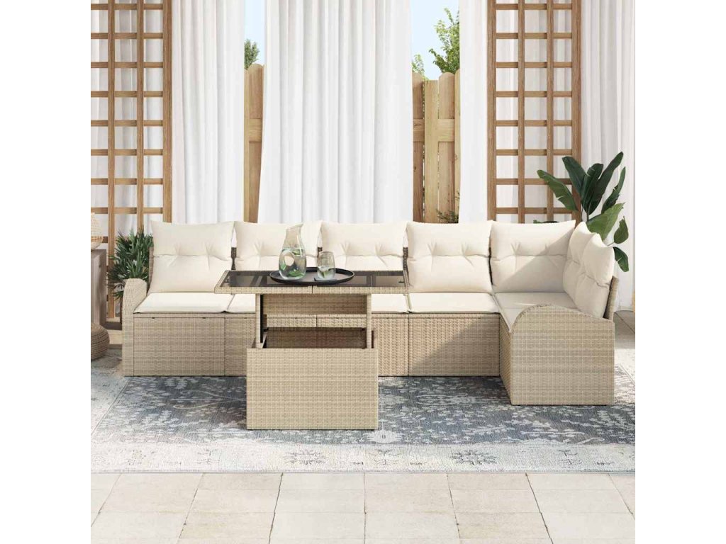 Sada zahradních pohovek s polštářem 7 pcs Béžová Poly ratan