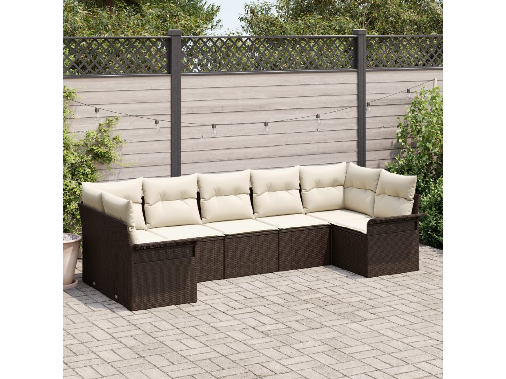 Sada zahradních pohovek s polštářem 7 pcs Hnědá Poly ratan