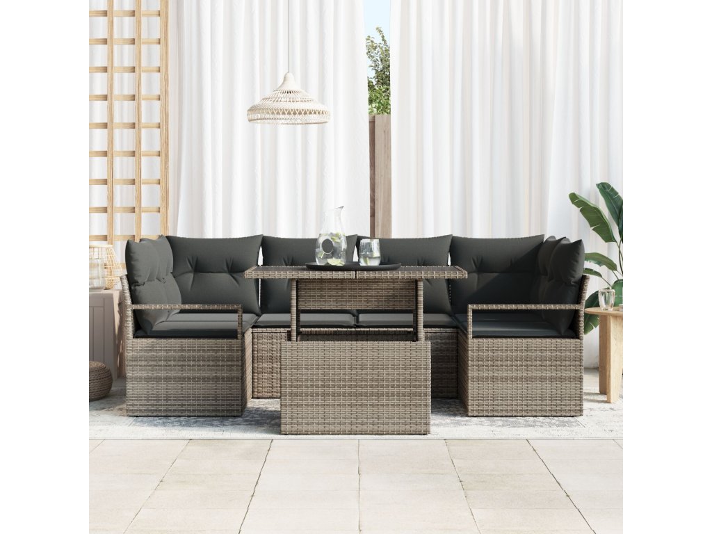Sada zahradních pohovek s úložištěm 7 pcs Šedá polyratan