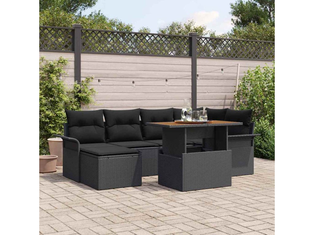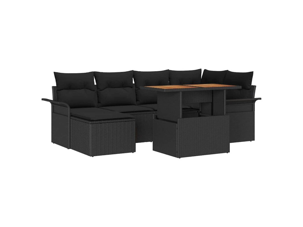 Sada zahradních pohovek s úložištěm 7 pcs Černá Poly ratan