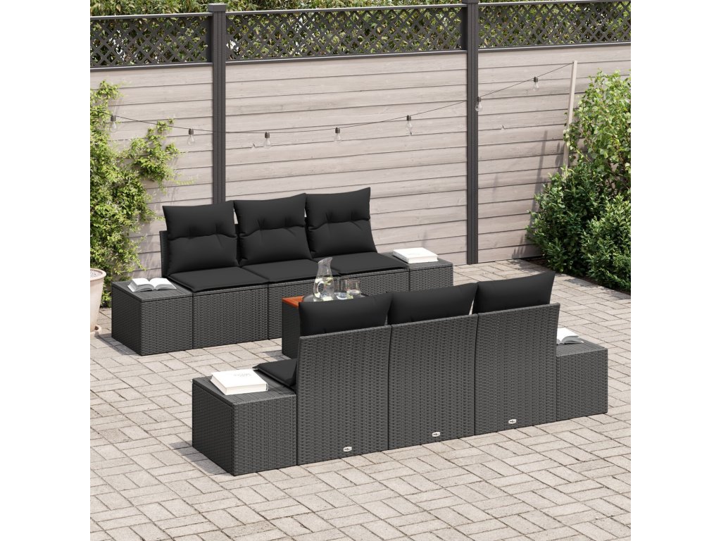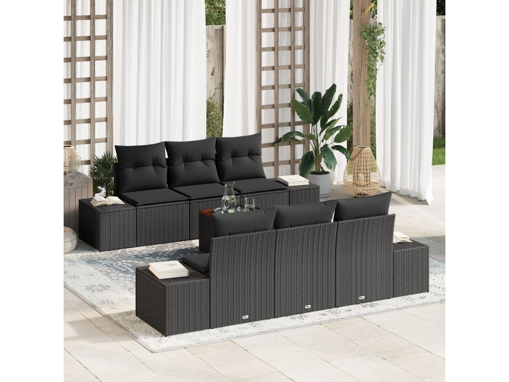 Sada zahradních pohovek s polštářem 7 pcs Černá Poly ratan