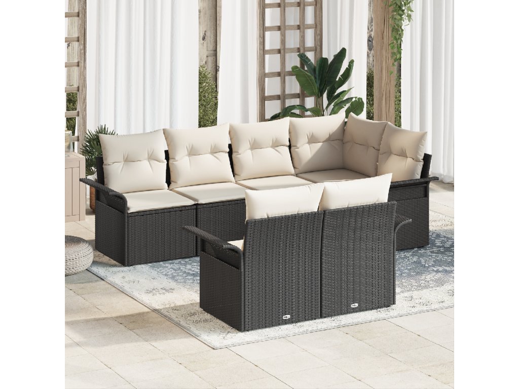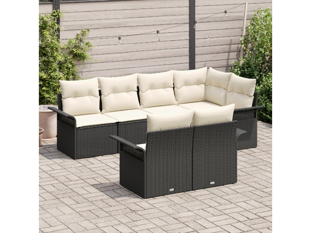 Sada zahradních pohovek s polštářem 7 pcs Černá Poly ratan
