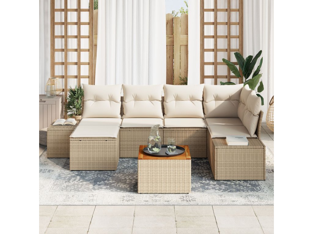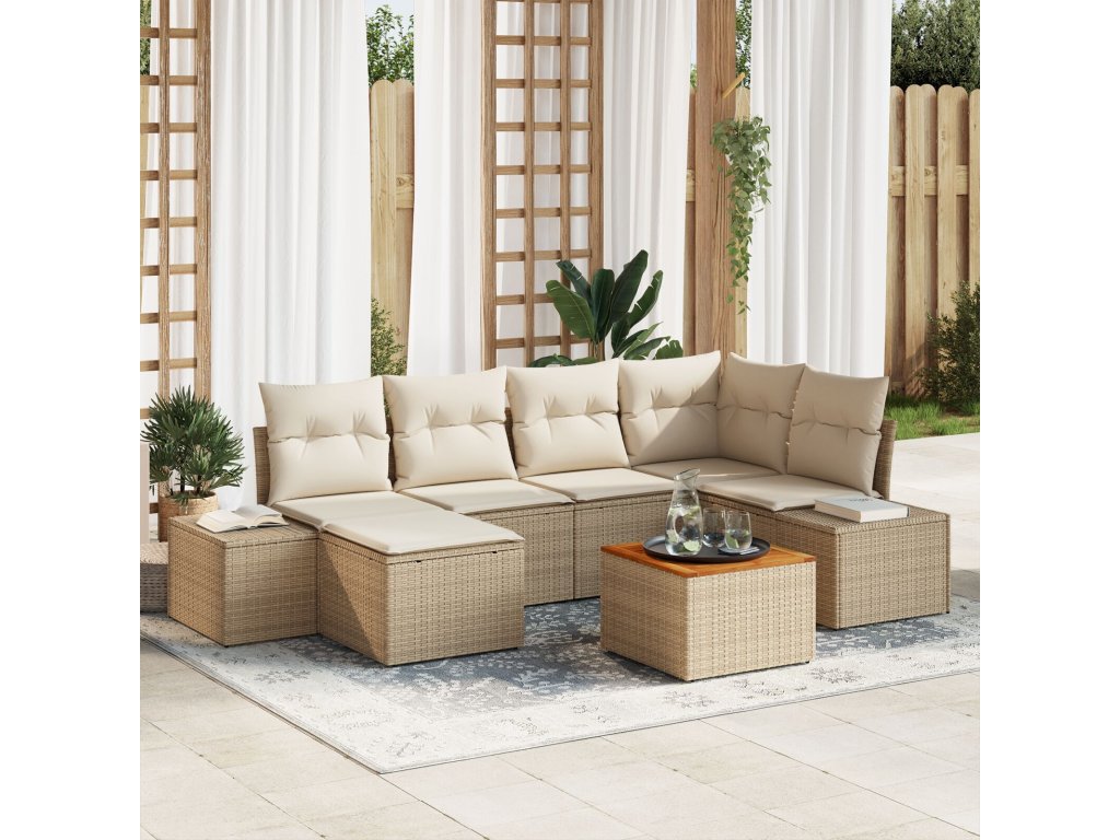Sada zahradních pohovek s polštářem 7 pcs Béžová Poly ratan