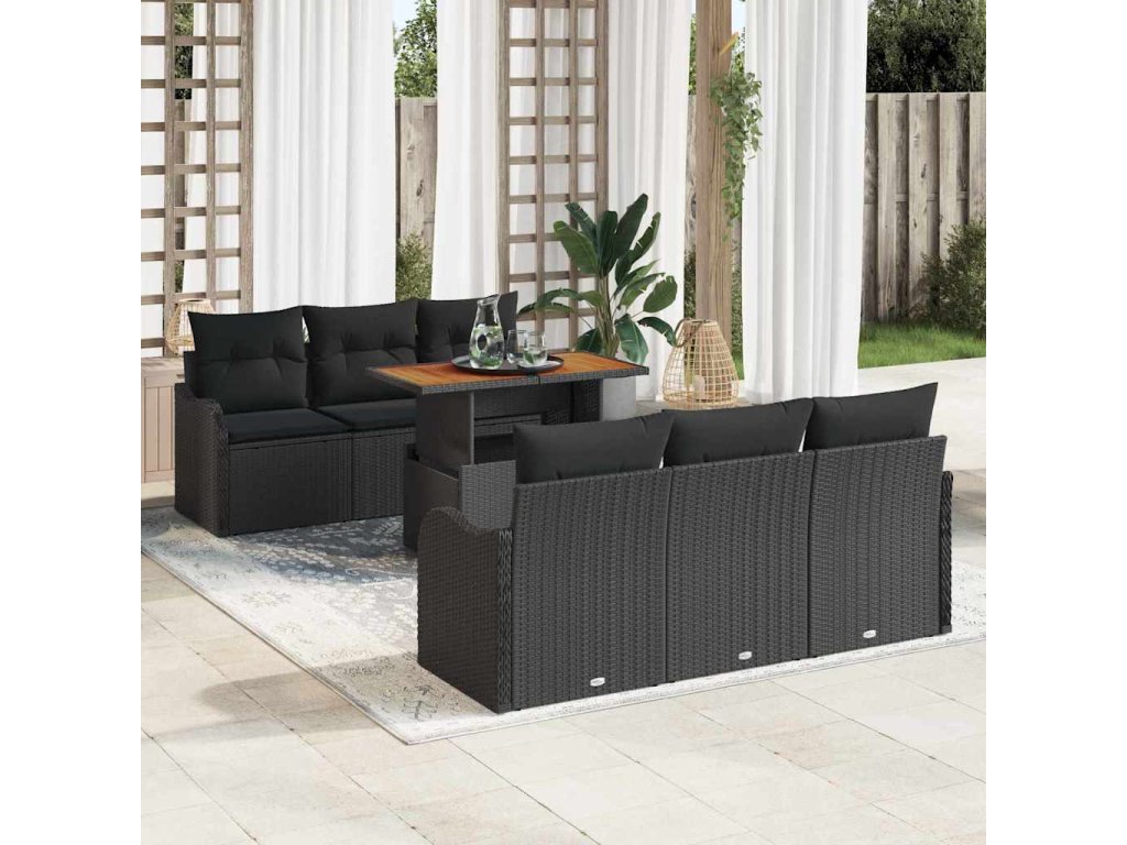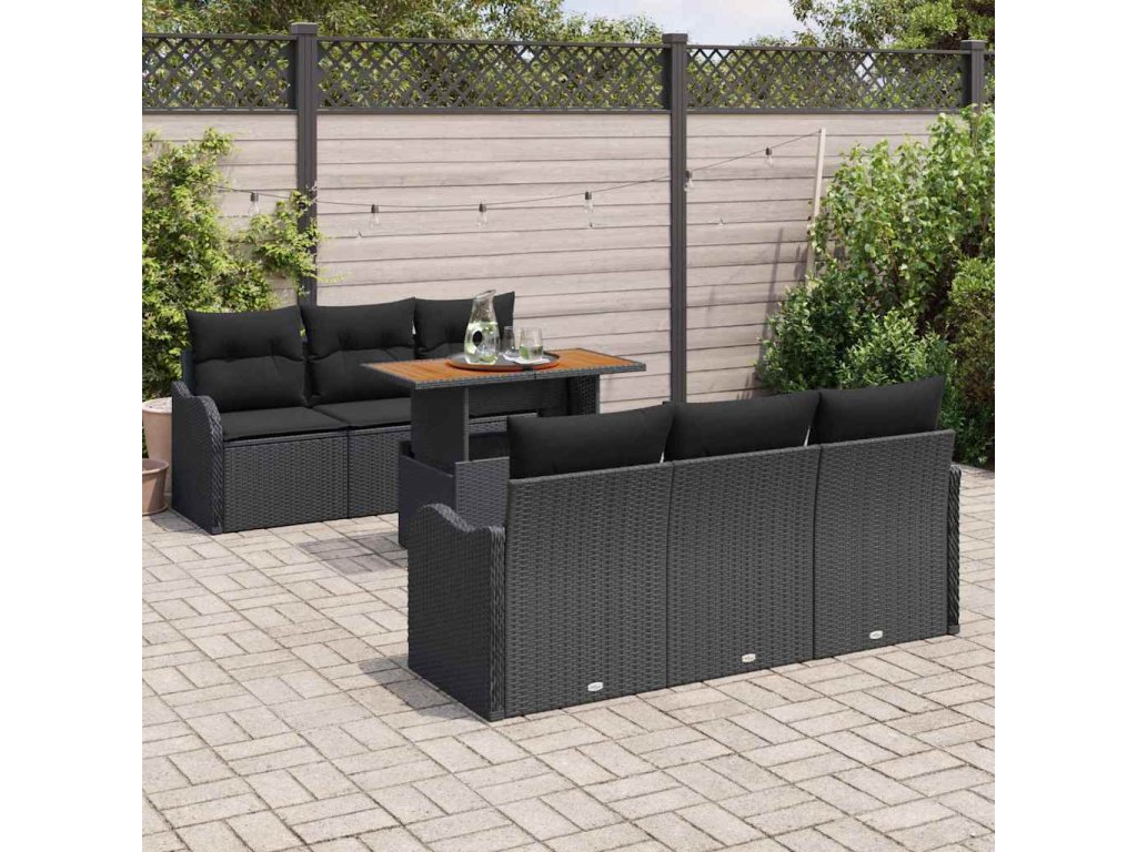 Sada zahradních pohovek s úložištěm 7 pcs Černá Poly ratan