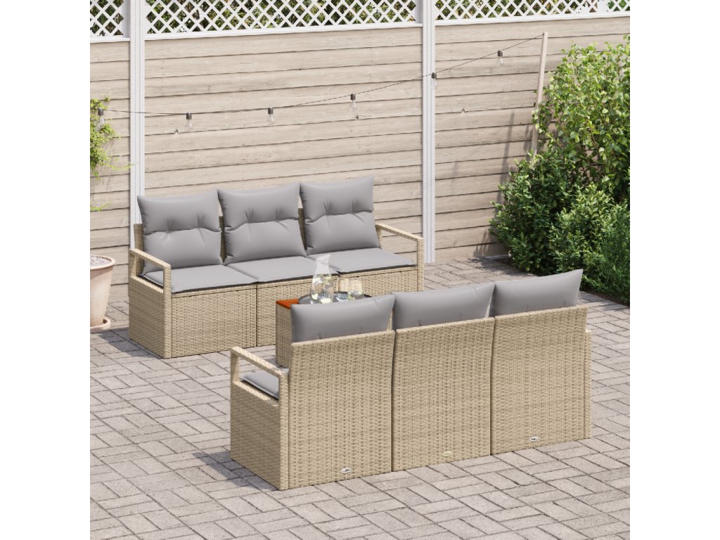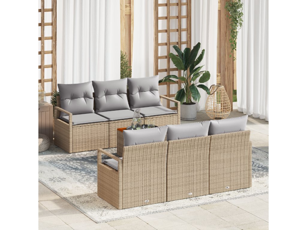 Sada zahradních pohovek s polštářem 7 pcs Béžová Poly ratan
