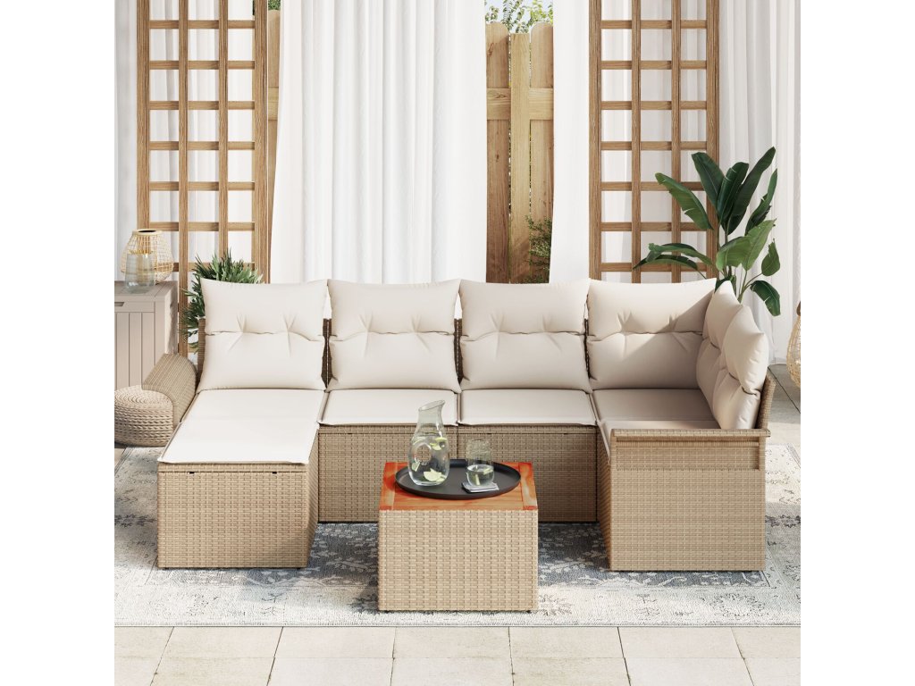Sada zahradních pohovek 7 pcs Béžová Poly ratan