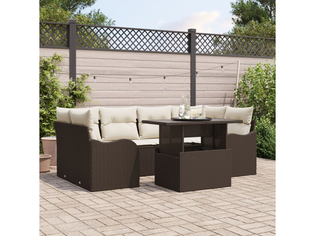 Sada zahradních pohovek s polštářem 7 pcs Hnědá Poly ratan