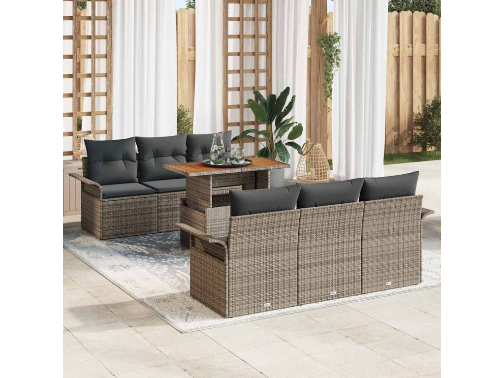 Tahle sada zahradního nábytku je skvělým doplňkem do jakéhokoli venkovního prostoru. Spojuje pěkný vzhled s praktickým využitím. Pohodlně usadí sedm lidí a promění tak zahradu, terasu nebo patio na stylové místo pro relaxaci nebo pořádání akcí. Její moderní styl s čistými liniemi a minimalistickým pojetím skvěle ladí s různými venkovními dekoracemi. Ať už pořádáš neformální setkání nebo si užíváš chvíle osamotě, tahle sada nabízí jak skvělý vzhled, tak užitečnost, a hodí se do jakéhokoli venkovního prostředí.