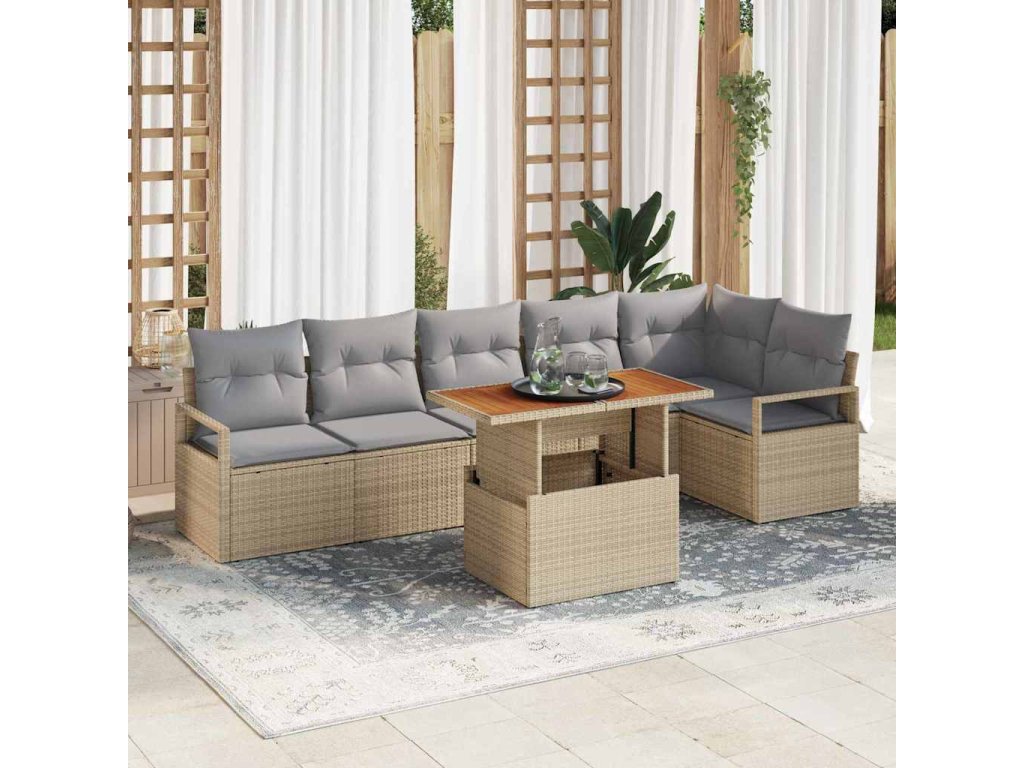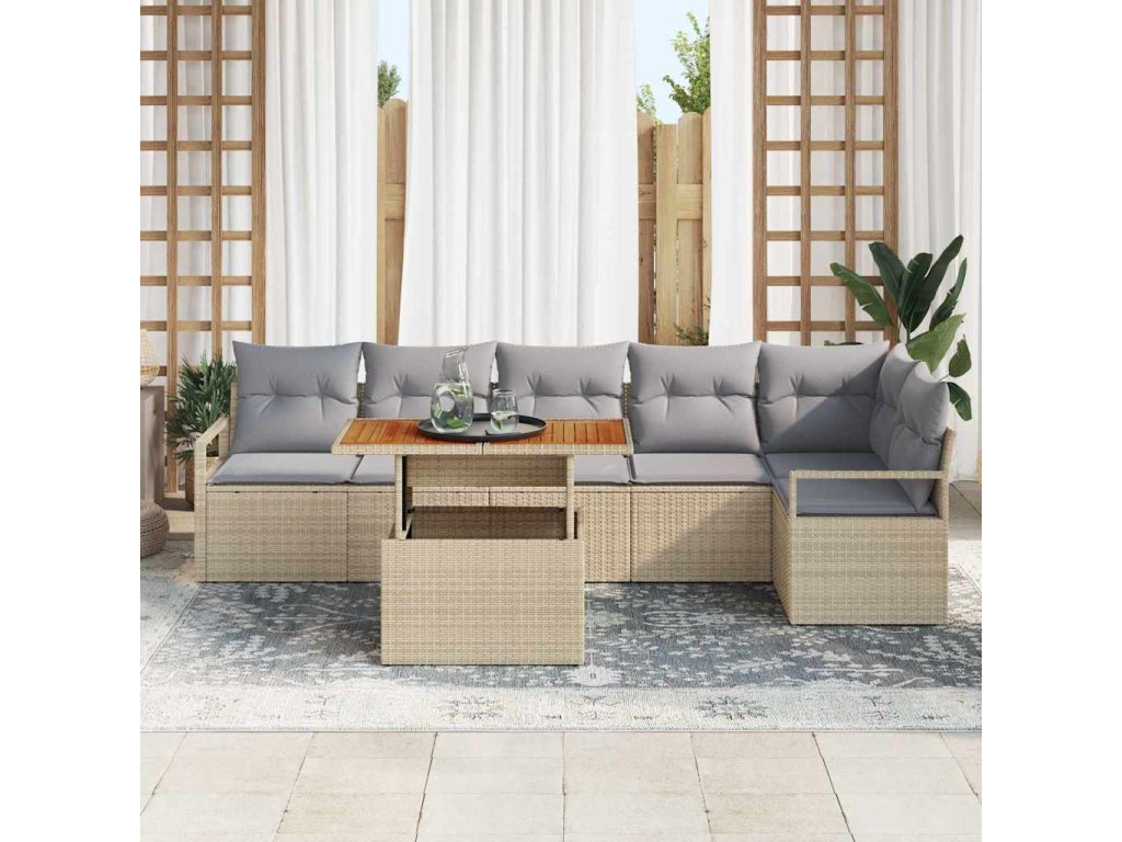 Sada zahradních pohovek s úložištěm 7 pcs Béžová Poly ratan