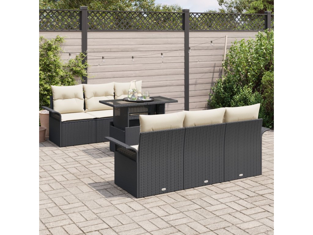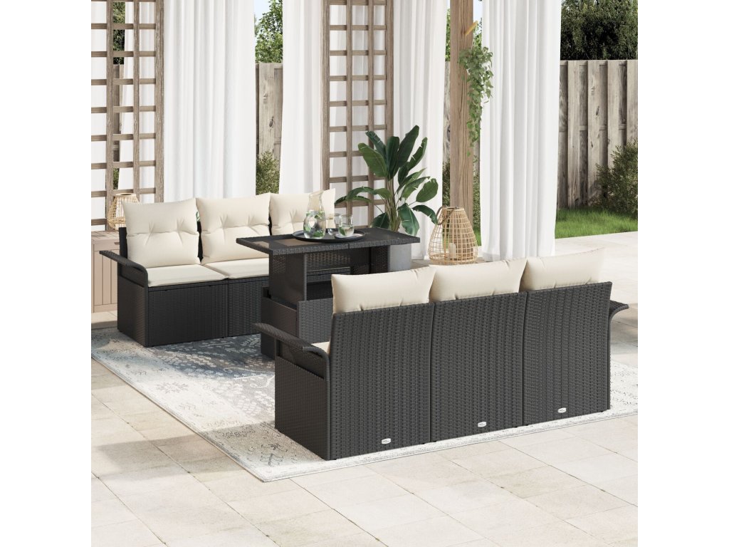 Sada zahradních pohovek s polštářem 7 pcs Černá polyratan