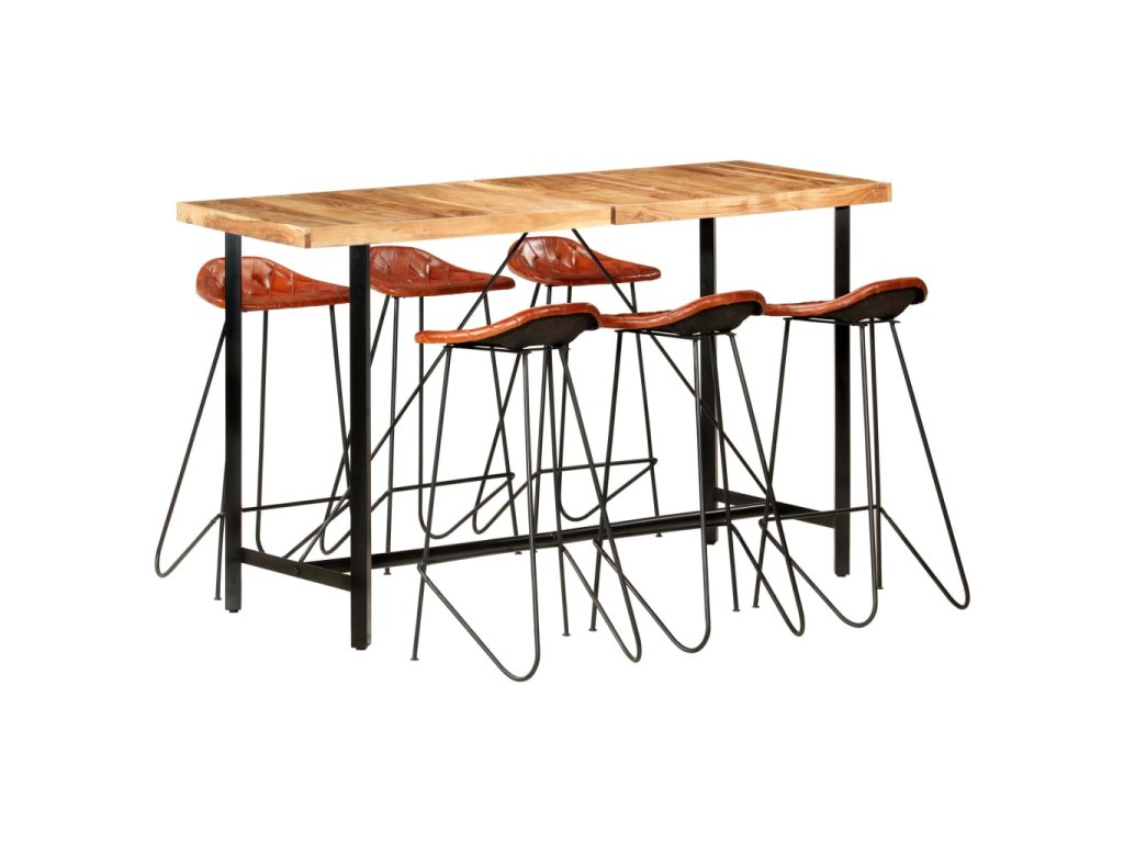 7dílný barový set masivní akácieové dřevo a pravá kůže