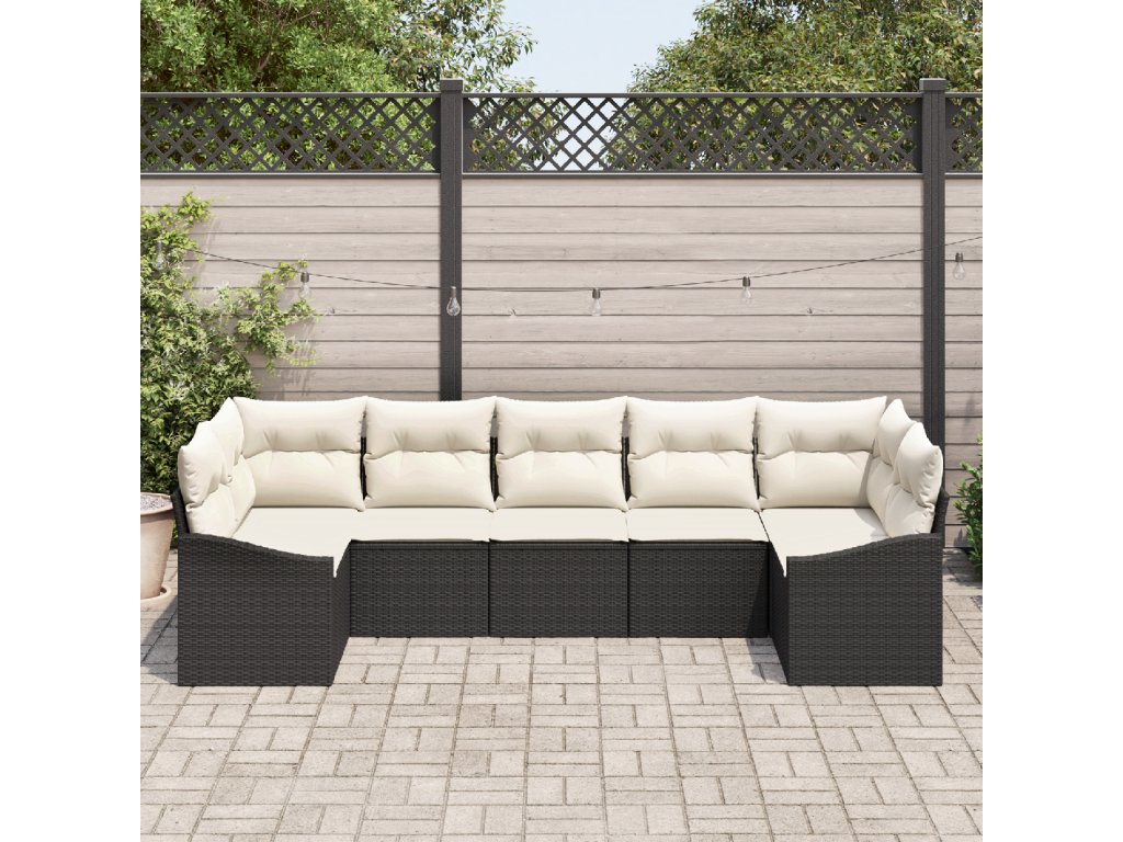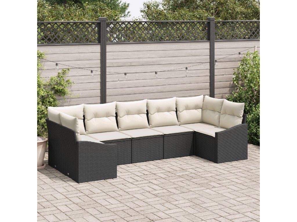 Zahradní jídelní souprava s polštářem 7 pcs Černá a krémová