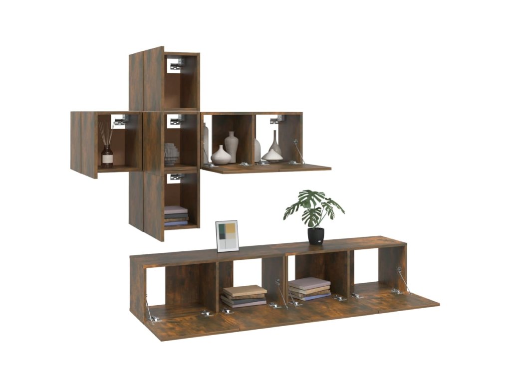 7dílný set TV skříněk kouřový dub kompozitní dřevo