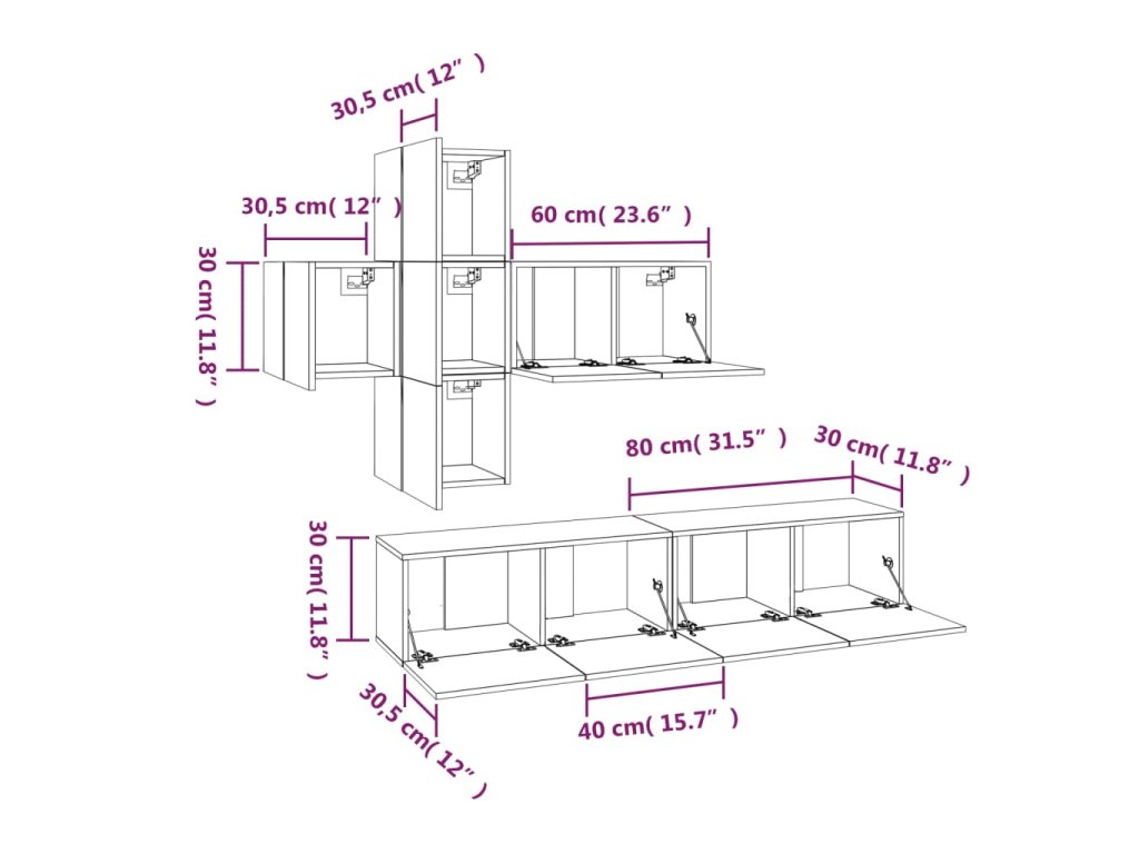 - 4x TV skříňka: 30,5 x 30 x 30 cm (D x Š x V)