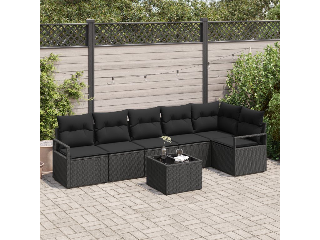 Set pohovek s polštářem s úložištěm 7 pcs Černá polyratan