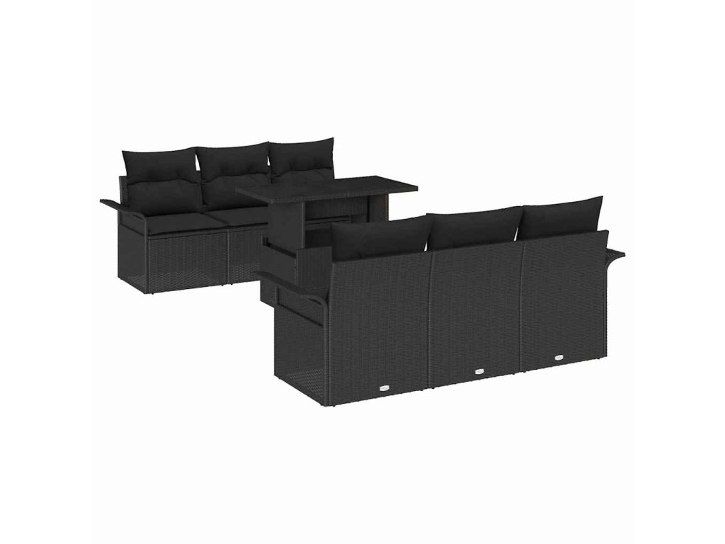 Sada zahradních pohovek s polštářem 7 pcs Černá Poly Ratan