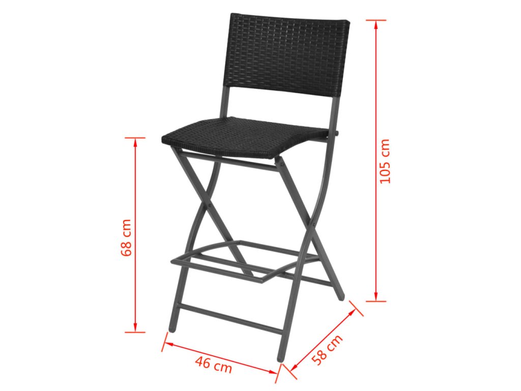 Tato barová sada je vyrobena z odolného a vodotěsného PE ratanu, díky čemuž se snadno čistí, je odolná proti opotřebení a je vhodná pro každodenní použití. Stůl a židle mají robustní a odolný ocelový rám s práškovým povrchem. Díky lehké konstrukci se všemi součástmi můžete snadno pohybovat. Barové stoličky mají integrované opěrky nohou, které zvyšují pohodlí při sezení. Stůl a stoličky lze snadno složit, když je nepoužíváte, čímž ušetříte spoustu úložného prostoru.