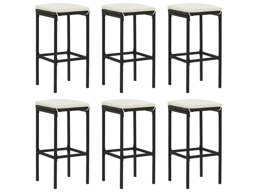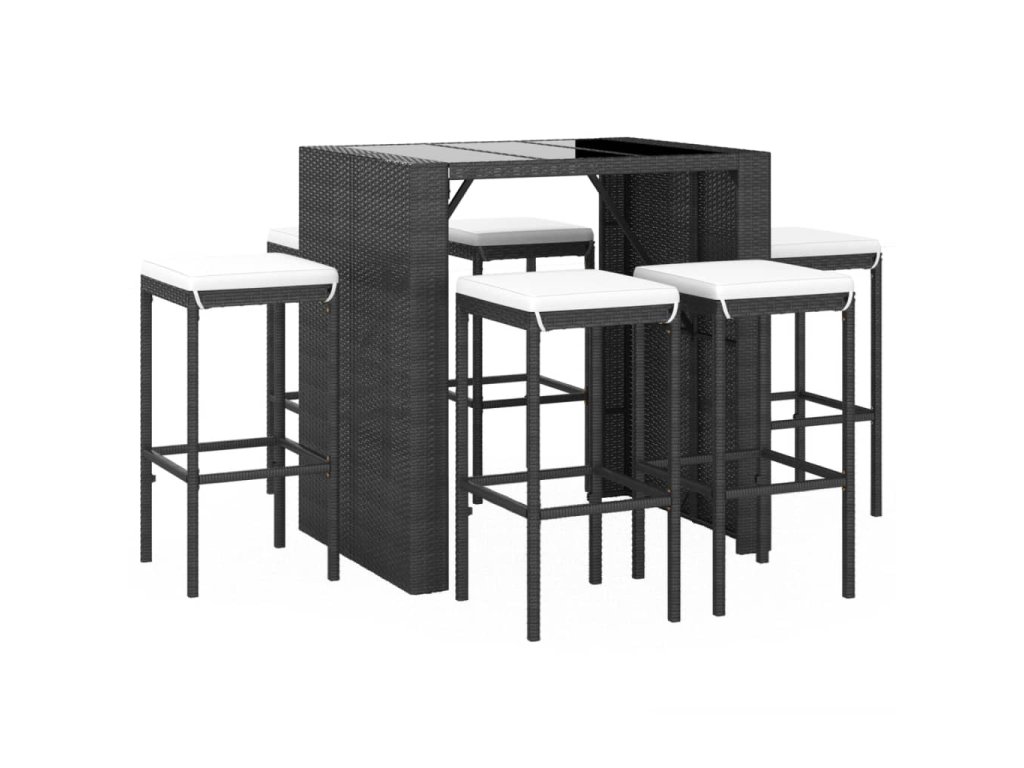 7dílný zahradní barový set s poduškami černý polyratan