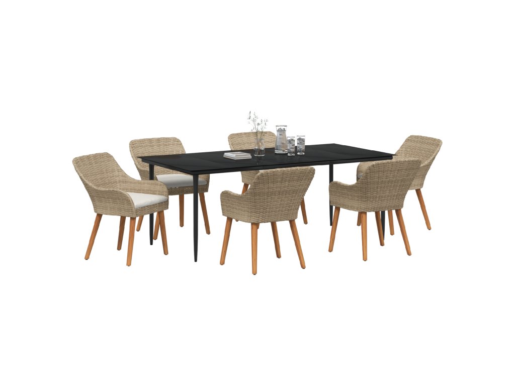 Zahradní jídelní souprava s polštářem 7 pcs Béžová polyratan