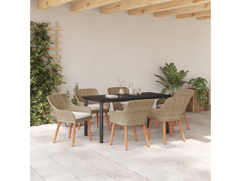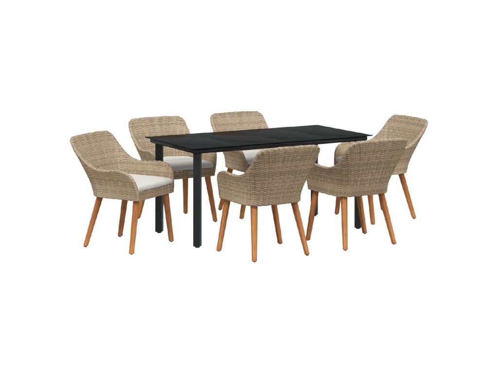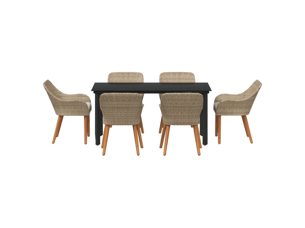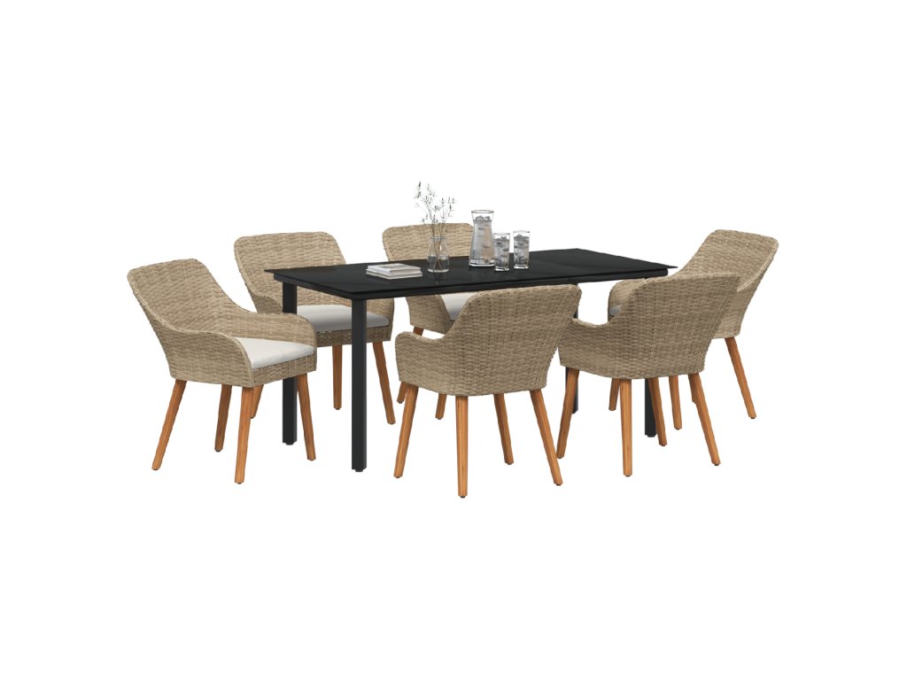 Zahradní jídelní souprava s polštářem 7 pcs Béžová polyratan