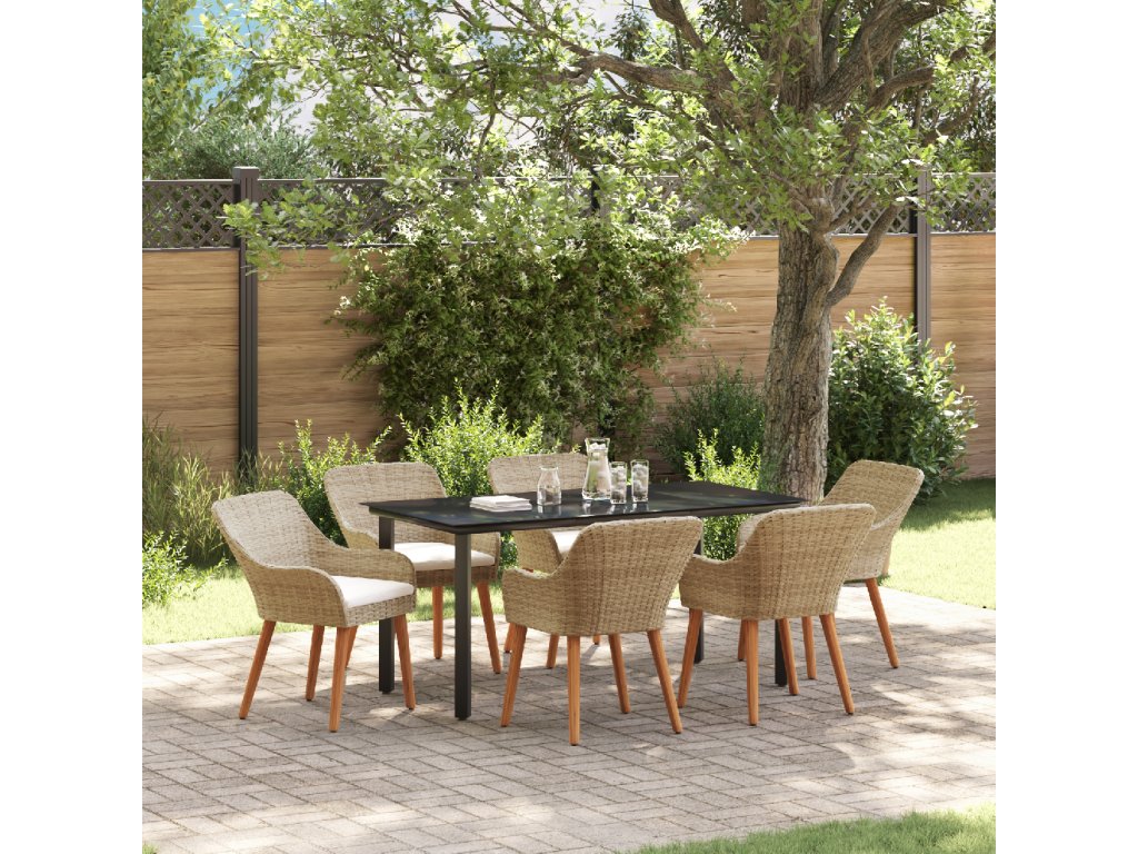 Odolné materiály: Díky kvalitnímu poly ratan a silný oceli, tato sada vydrží všechno, suitable for co počasí přinese po celý rok. Je navržená tak, aby odolávala dešti, UV paprskům a opotřebení, takže ji můžeš bez obav používat na venkovní akce. Můžeš se na ní spolehnout, že bude stabilní a bude vypadat skvěle i po mnoha posezení. UV-odolná kvalita: Tato sada má UV-odolné materiály, které ji udržují stále pěknou a silnou, brání vyblednutí na slunci. Takže vždycky bude vypadat skvěle a váš venkovní prostor zůstane čerstvej bez ohledu na roční období. Elegantní design stolu: Mrkni na skvělej patio stůl s elegantním skleněným povrchem. Snadno se čistí a vypadá skvěle, spojuje styl s praktičností, takže venkovní stolování je radost. Pohodlné sezení: Tato jídelní sada obsahuje příjemný polštáře na sezení, které mají praktické zipy, což dělá dlouhá jídla venku bezproblémový. Poly ratanový židle ne jenom dobře vypadají, ale taky jsou pohodlný, ideální na lenošení v letních dnech. Údržba a péče: Aby vaše sada zůstala v top stavu, používejte kryty, když není v provozu. To ji chrání před nepříznivým počasím a pomáhá jí dlouho vydržet. Navíc je snadná na údržbu, takže se můžeš soustředit na užívání si prostoru vaší zahrady.- Barva: Béžová