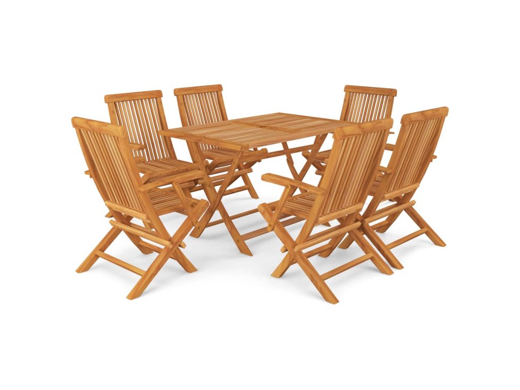 Nábytek odolává vlhkosti a hmyzu. Je ošetřený krásnou povrchovou úpravou, která dřevu dává teplou barvu. Jídelní stůl se speciálním designem umožňuje instalaci slunečníku do středu stolu, a chránit se tak před sluncem. Stůl a židle můžete složit, když je nepoužíváte. Poskytnou vám pohodlí a skvělé místo, kde můžete trávit čas s rodinou a přáteli. Tuto sadu lze navíc snadno čistit vlhkým hadříkem.