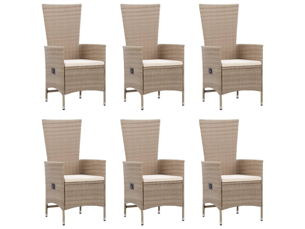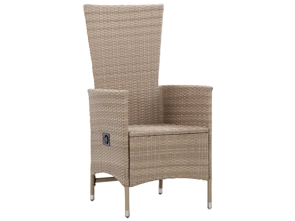 Jídelní stůl je zhotovený z masivního akáciového dřeva, takže je pevný a stabilní. Olejem napuštěný povrch vám umožní používat tento stůl i ve venkovních prostorech. Jídelní židle mají ocelový rám, který je opletený klimaticky odolným PE ratanem, jsou proto bytelné a snadno se udržují čisté. Stisknutím tlačítka na boku můžete sklopit opěradlo. Každá židle má hustě polstrovanou podušku, abyste si při odpočinku mohli dopřát mimořádný komfort.