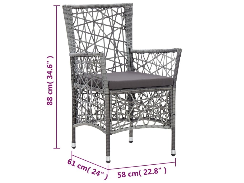 Stůl i židle jsou vyrobeny z voděodolného polyratanu. Díky tomu jsou nenáročné na údržbu a hodně toho vydrží, tudíž se hodí ke každodennímu venkovnímu použití. Ocelové rámy dodávají stolu i židlím pevnost a stabilitu. Stůl disponuje deskou z tvrzeného skla a židle se mohou pochlubit nevšedním proplétaným provedením. Každou z nich navíc dodáváme včetně pohodlného odmínatelného podsedáku.