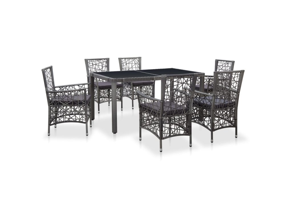 7dílný zahradní jídelní set polyratan šedý