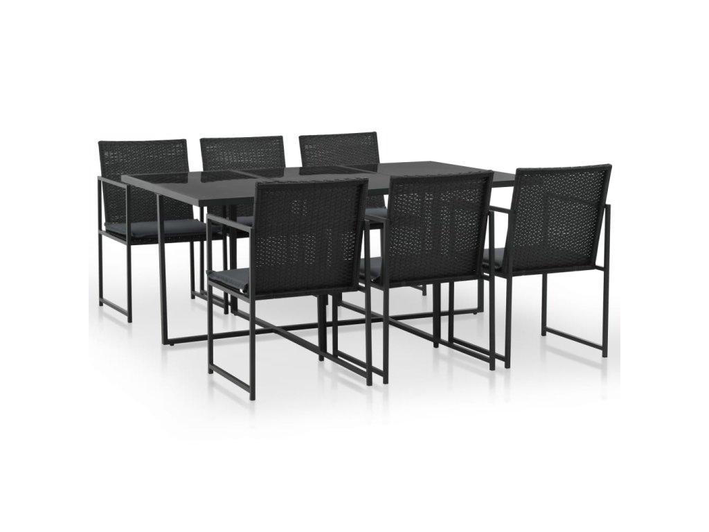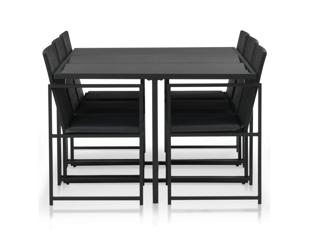7dílný zahradní jídelní set s poduškami polyratan černý