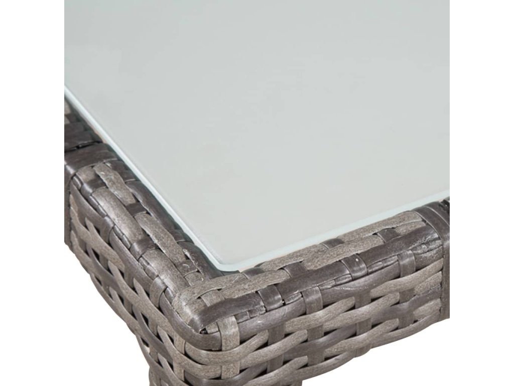 - Materiál: PE ratan + skleněná stolní deska + ocelový rám s práškovým nástřikem