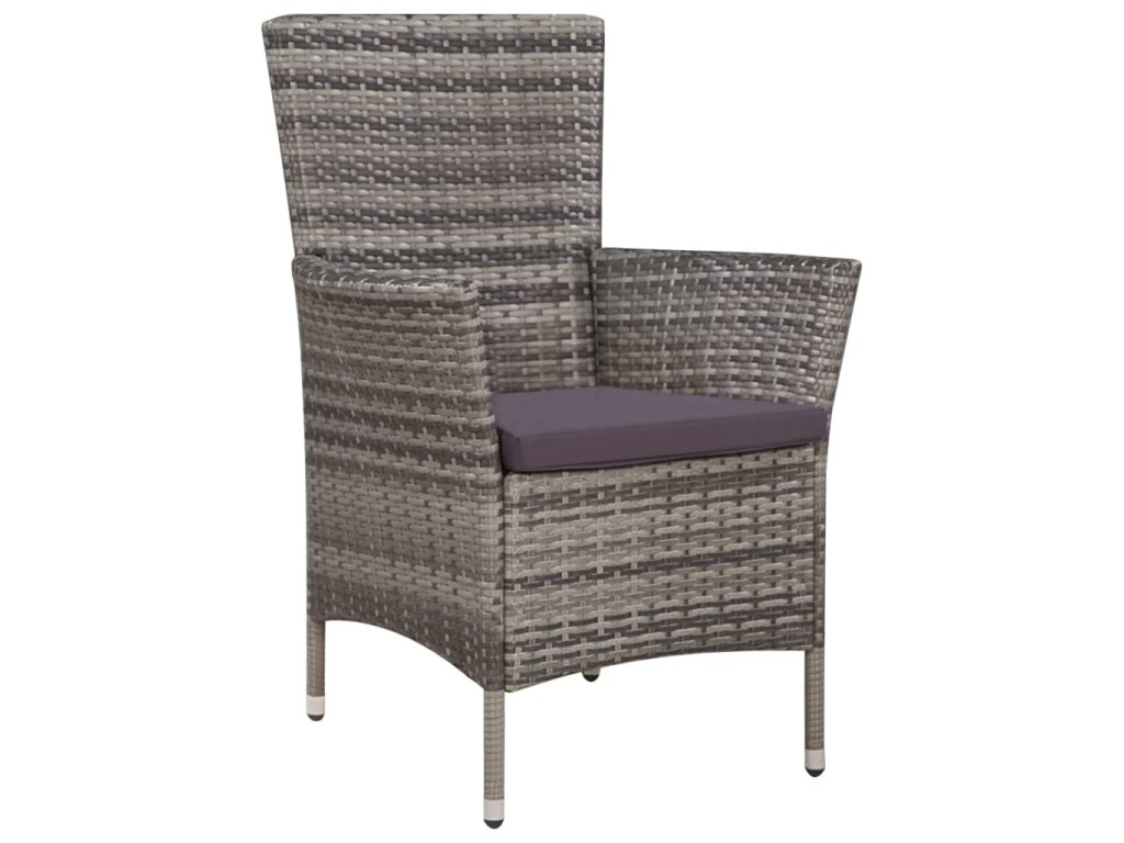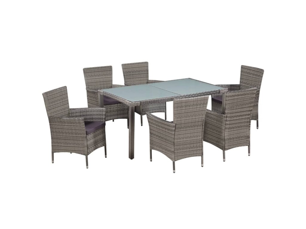 7dílný zahradní jídelní set s poduškami polyratan šedý