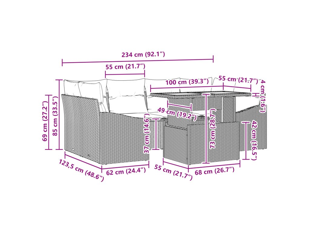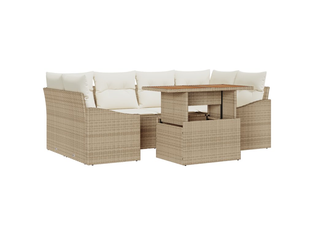 Materiály: Sestává z vysoce kvalitního polyratanu a masivního akáciového dřeva, tento jídelní set je navržen pro použití odolné vůči počasí. Materiál polyratan je mistrně tkaný, aby poskytoval stylový a moderní vzhled a zároveň podporoval odolnost proti ostrému slunečnímu záření. Doplněním designu, masivní akáciové dřevo přidává přirozený a organický pocit, harmonicky se slučující se svým okolím. Praktické komponenty: Tento set zahrnuje dvě pohovky s opěrkami, dvě rohová sedadla, dvě středová sedadla a jeden zahradní stůl, každý s integrovanými úložnými funkcemi. Navržené pro venkovní pohodlí, kusy nábytku poskytují prostorné oddíly pro udržení nezbytností organizovaných a skrytých, čímž udržují uklizený a funkční venkovní prostor. Strukturální prvky: Vybaven modulárním designem, tento set umožňuje snadnou rekonfiguraci uspořádání sezení. Nastavitelné nohy přidávají další funkčnost, zajišťují stabilitu na nerovných površích, zvyšují pohodlí a použitelnost. Každý kus má rámování s práškovým lakováním pro snadnou údržbu. Všestrané aplikace: Ideální pro zahrady a terasy, tento jídelní set může sloužit pro různé aktivity, od pořádání venkovních večeří po poskytování relaxačního prostoru pro rodinu a přátele. Jeho flexibilní design se bez námahy přizpůsobí různým uspořádáním zahrady a životnímu stylu. Péče o nábytek: Aby udržel svůj prvotřídní stav, používejte kryt na nábytek, když se nepoužívá. Další péče zahrnuje otírání povrchů suchým hadříkem a vyhnout se přímé vlhkosti. Přijetím těchto opatření zajistíte, že set zůstane funkční a vizuálně atraktivní po celé roky.- Barva: Béžová a krémová