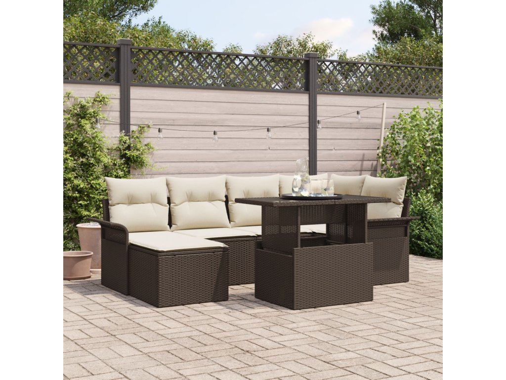 Sada zahradních pohovek s polštářem 7 pcs Hnědá Poly ratan