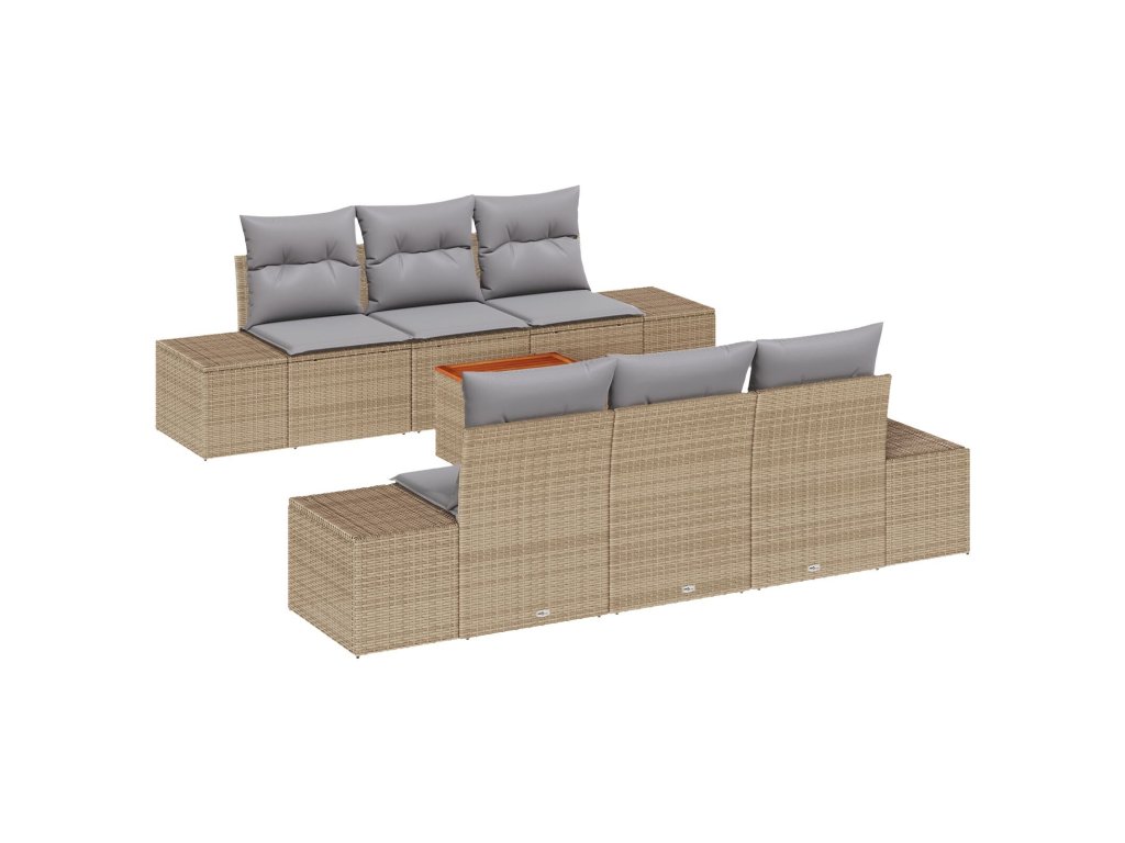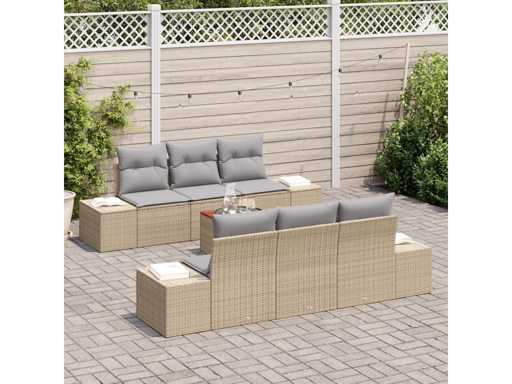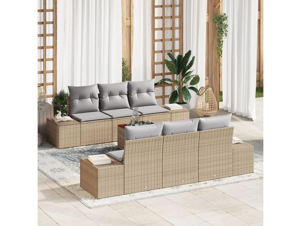 Sada zahradních pohovek s polštářem 7 pcs Béžová Poly ratan