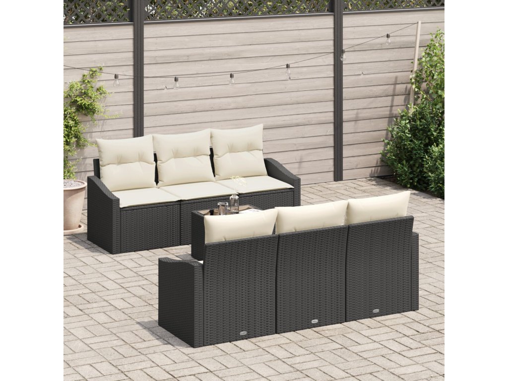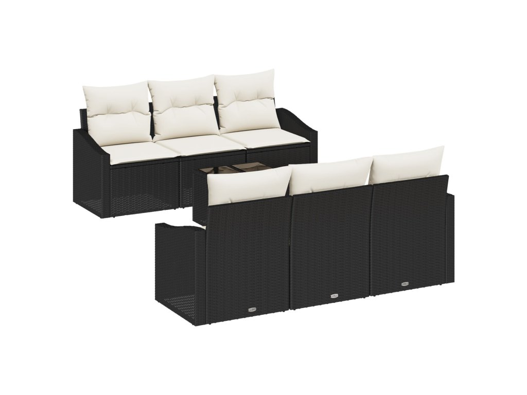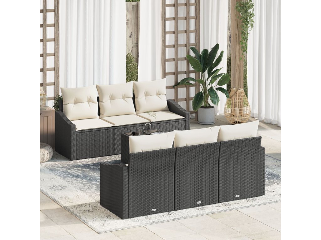 Set pohovek s polštářem 7 pcs Černá a krémová polyratan