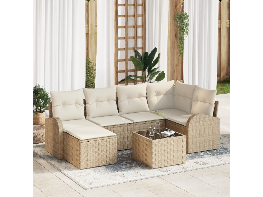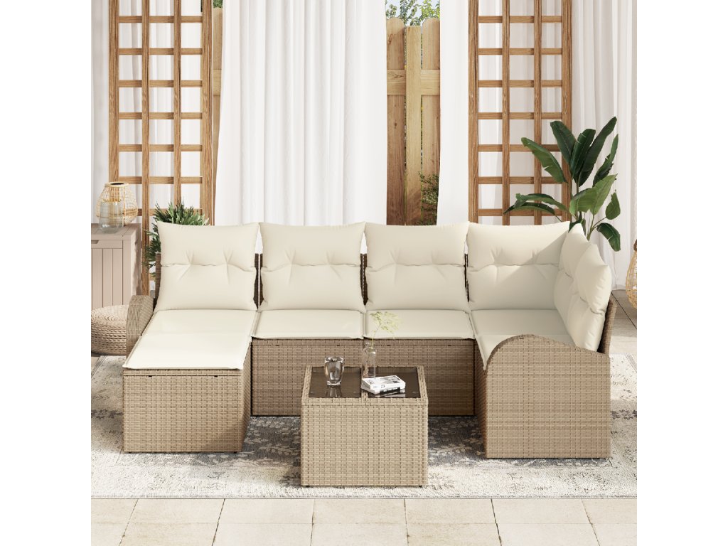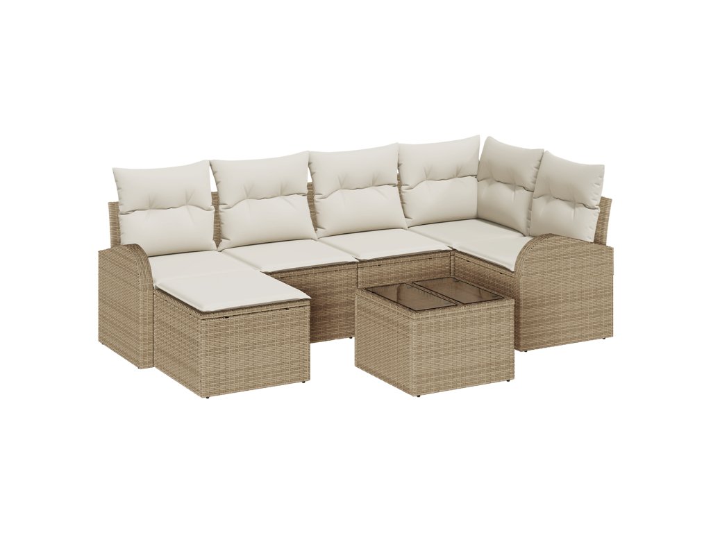 Set pohovek s polštářem 7 pcs Béžová a bílá polyratan