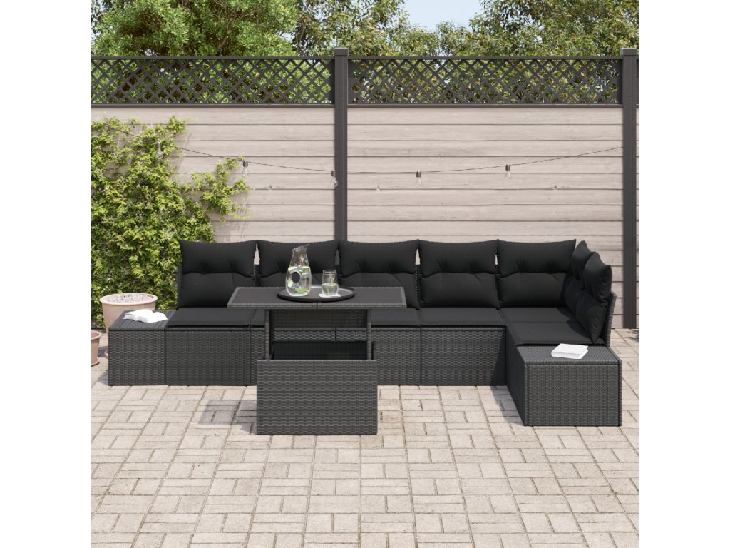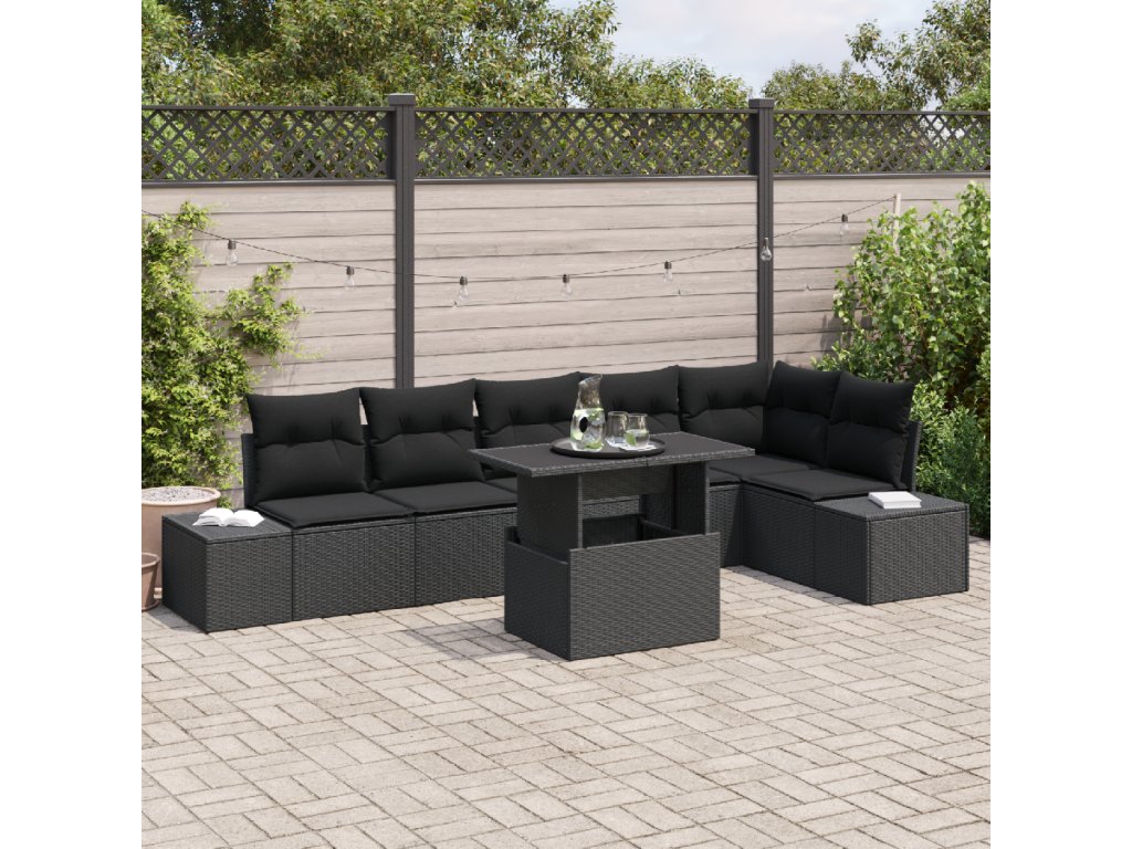 Sada zahradních pohovek s polštářem s úložištěm 7 pcs Černá