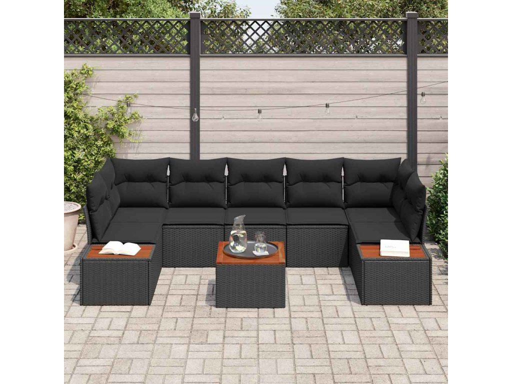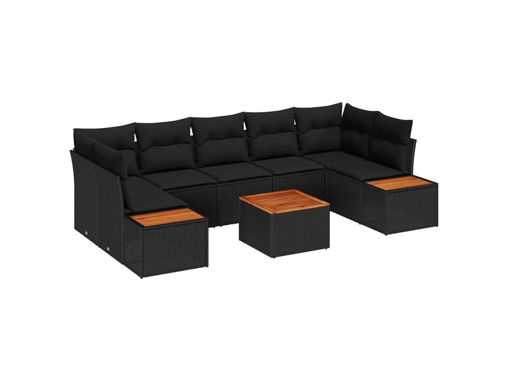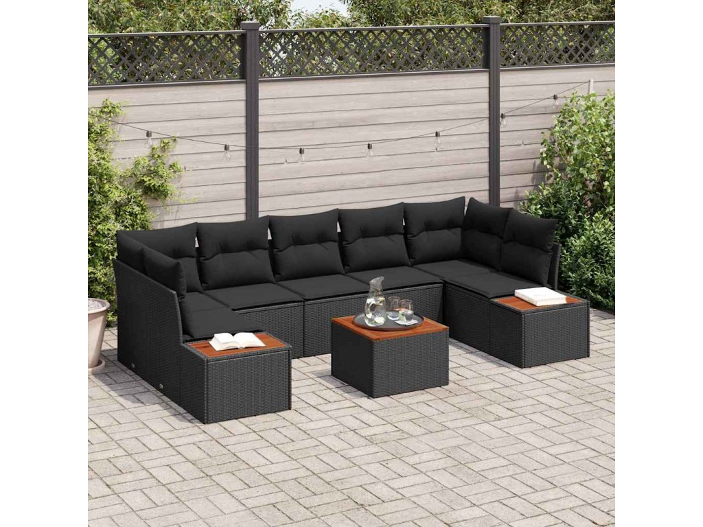 Sada zahradních pohovek s polštářem 8 pcs Černá Poly ratan