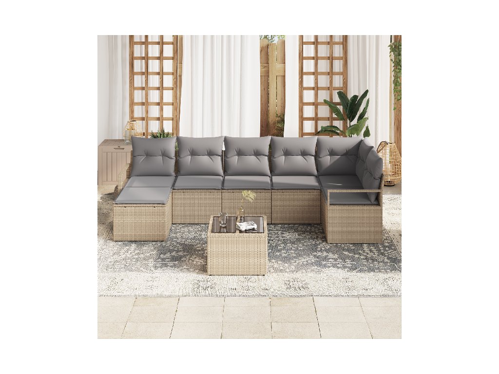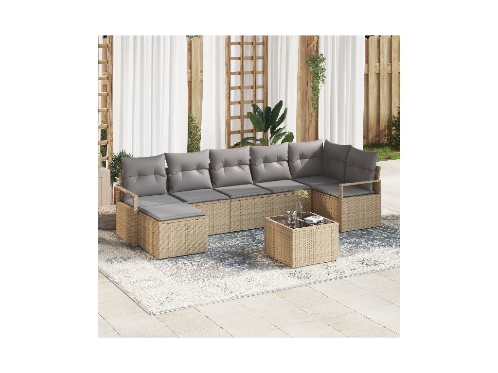 Set pohovek s polštářem 8 pcs Béžová polyratan