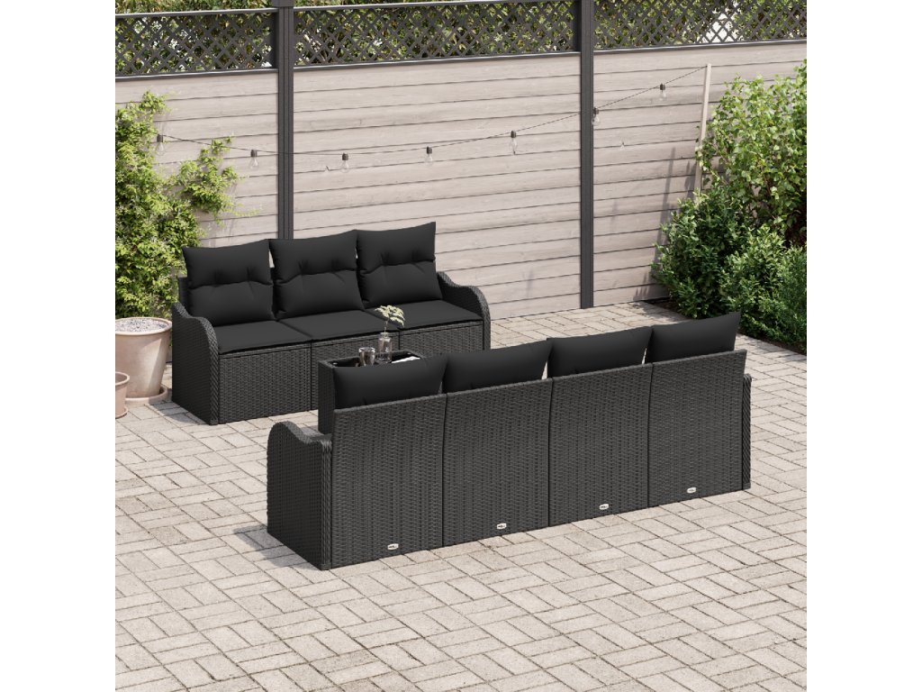 Sada zahradních pohovek 8 pcs Černá Poly ratan a ocel a sklo