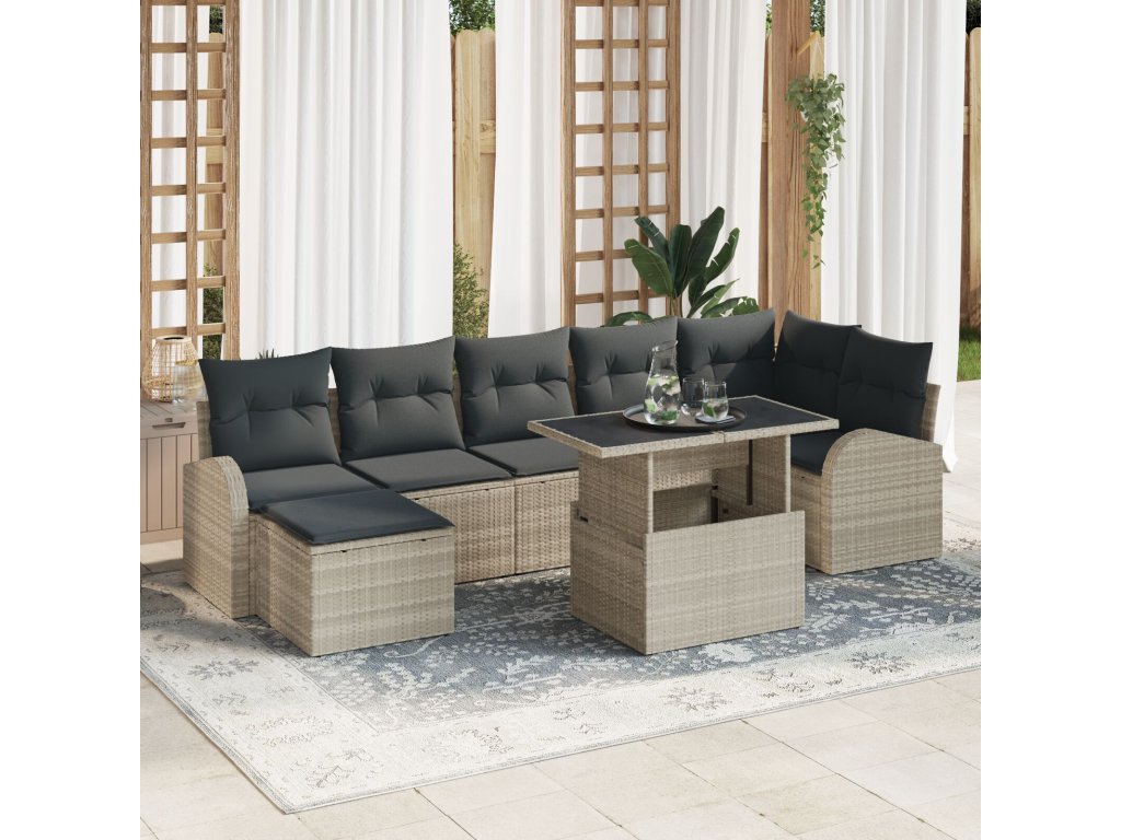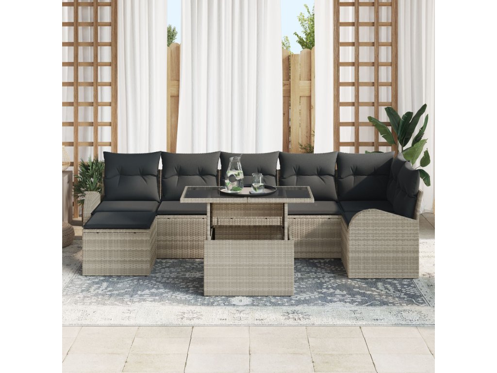 Sada zahradních pohovek s úložištěm 8 pcs Světle šedá polyratan