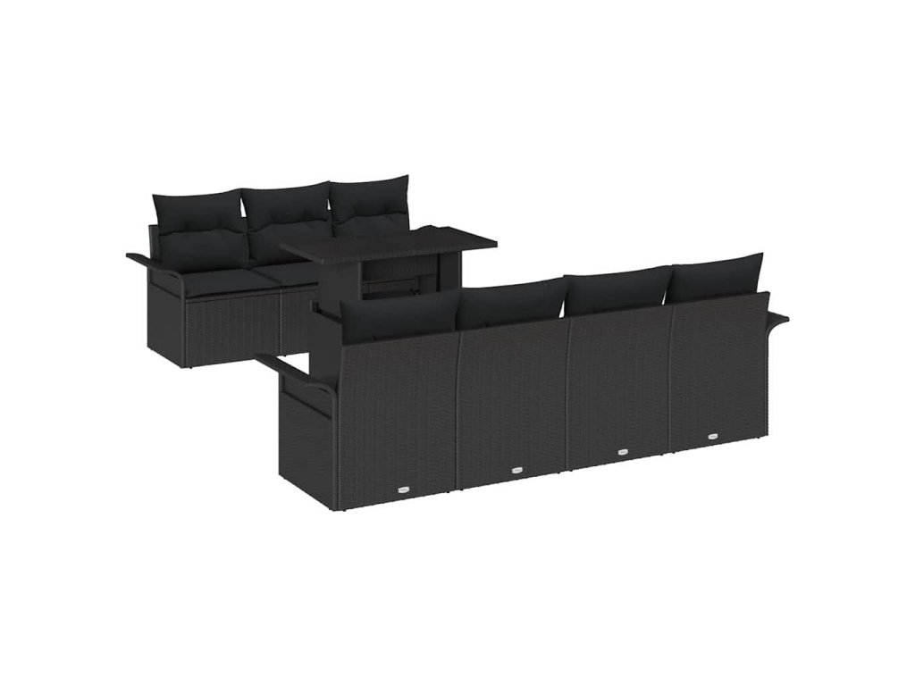 Sada zahradních pohovek s polštářem 8 pcs Černá Poly Ratan