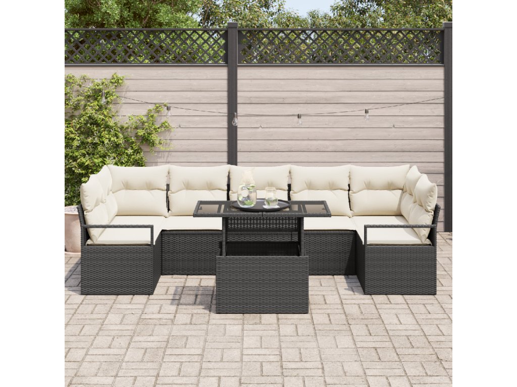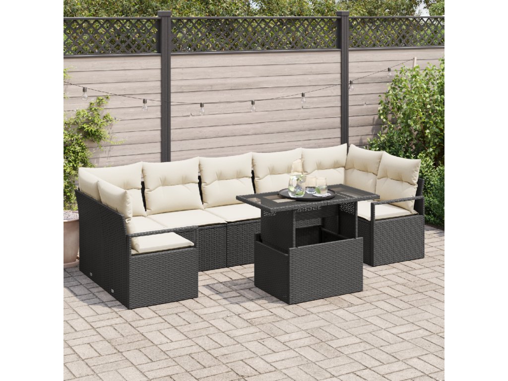 Sada zahradních pohovek 8 pcs Černá a krémová polyratan