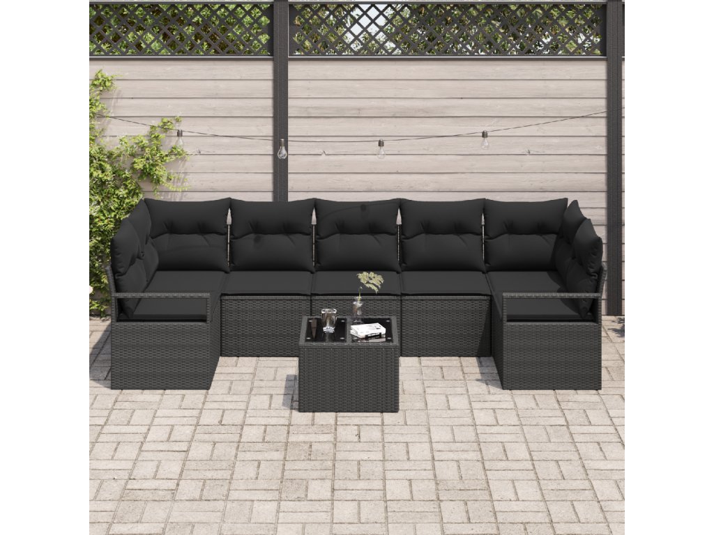 Sada zahradních pohovek 8 pcs Černá Polyratan a ocel a sklo