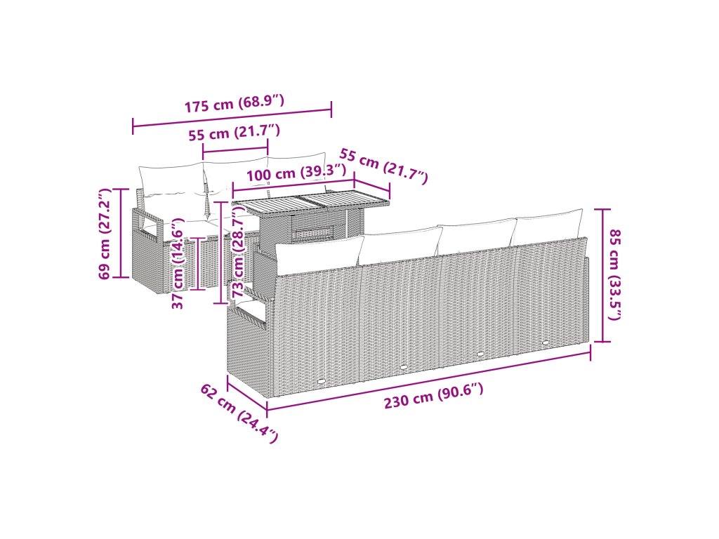 Sada zahradních pohovek s polštářem 8 pcs Šedá a hnědá