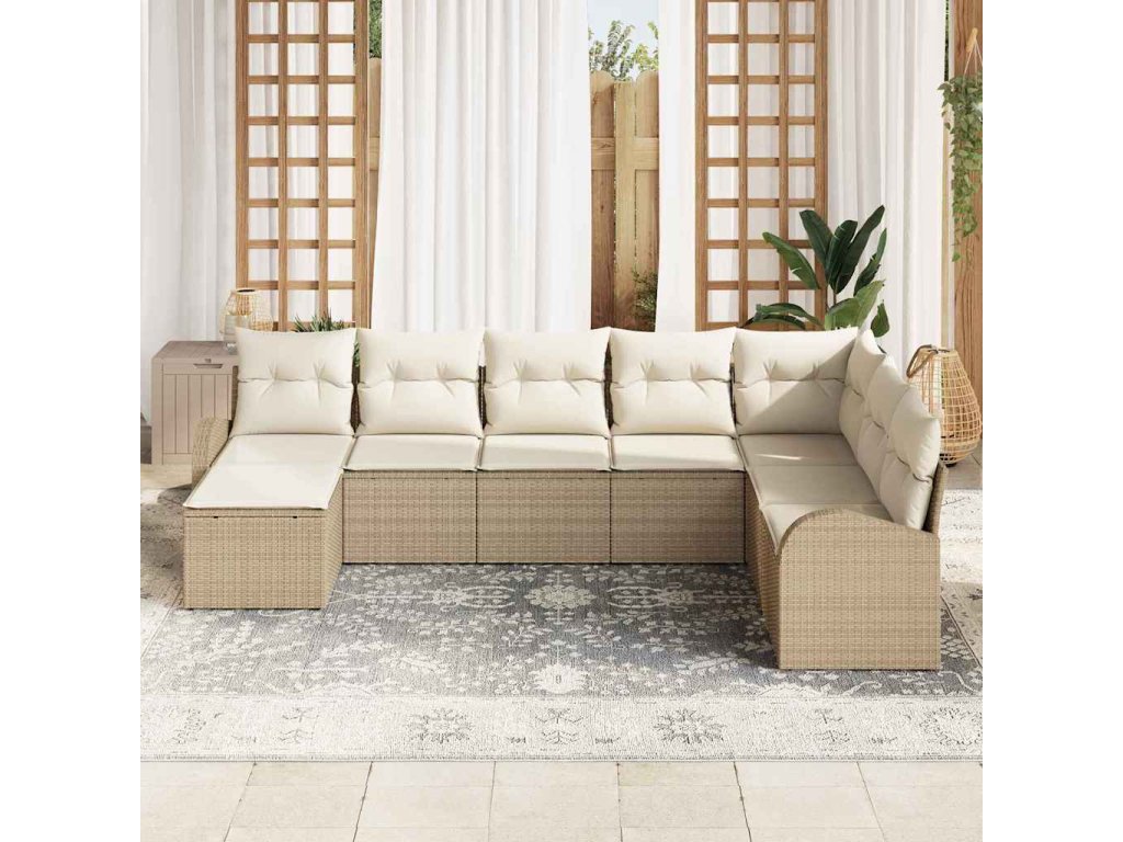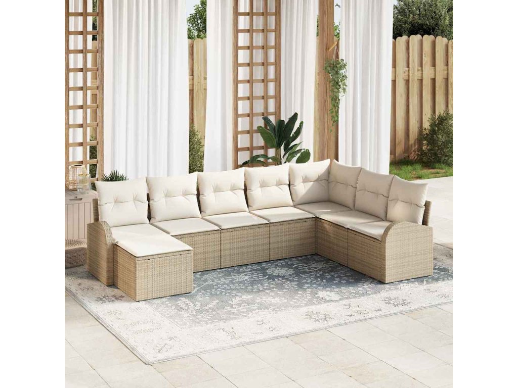 Set pohovek s polštářem 8 pcs Béžová a bílá polyratan